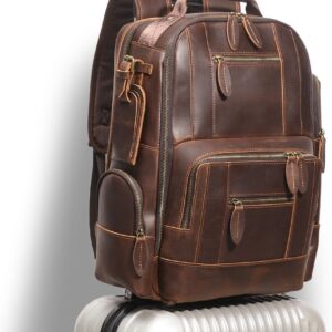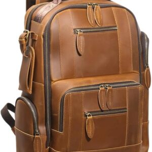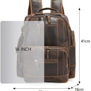Alice Fan Vintage Genuine Leather 15.6″ Laptop Backpack For Men Cowhide Hiking Camping Rucksack Business Travel Daypacks