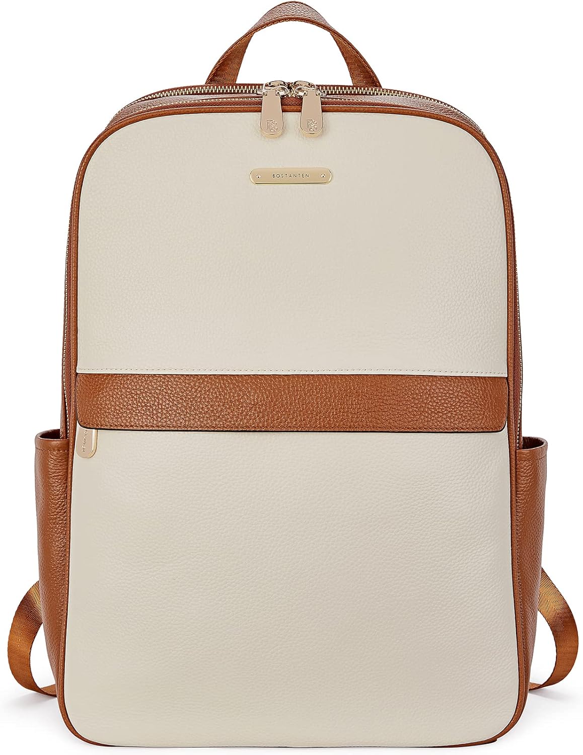 BOSTANTEN Genuine Leather 15.6 inch Laptop Backpack Purse for Women College Casual Backpack Travel Bag