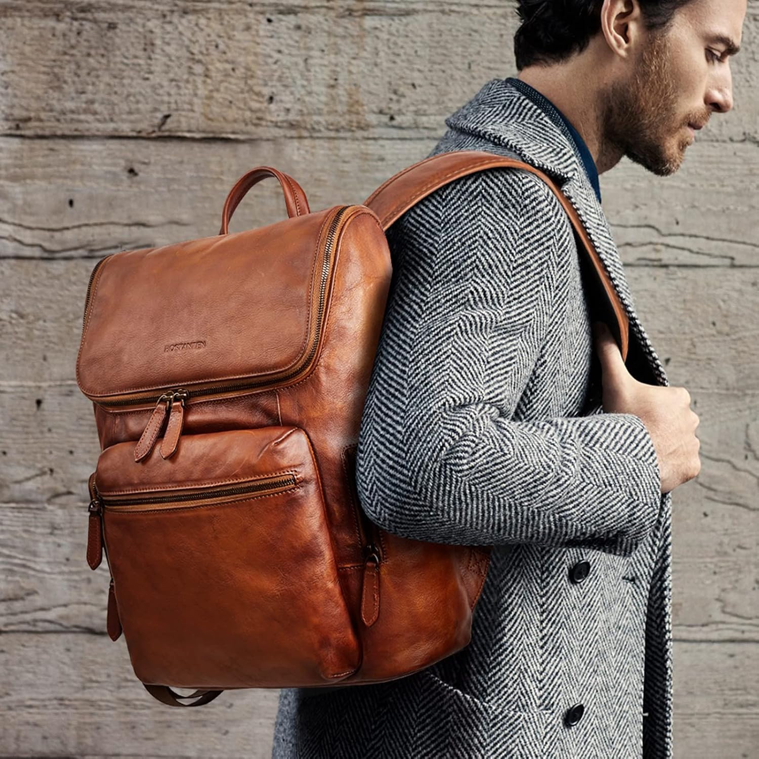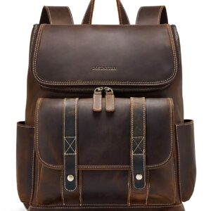 BOSTANTEN Leather Backpack for Men 15.6 inch Laptop Backpack Vintage Travel Office Bag Large Capacity Shoulder Bag Redbrown