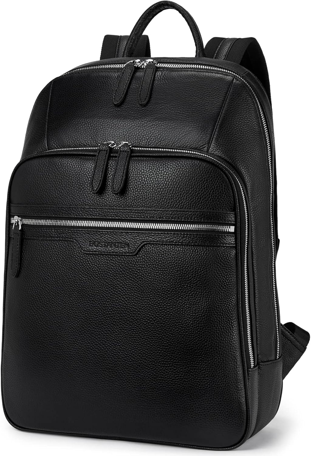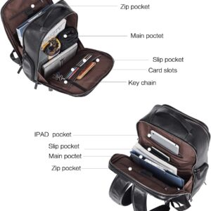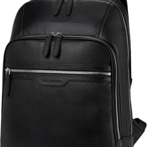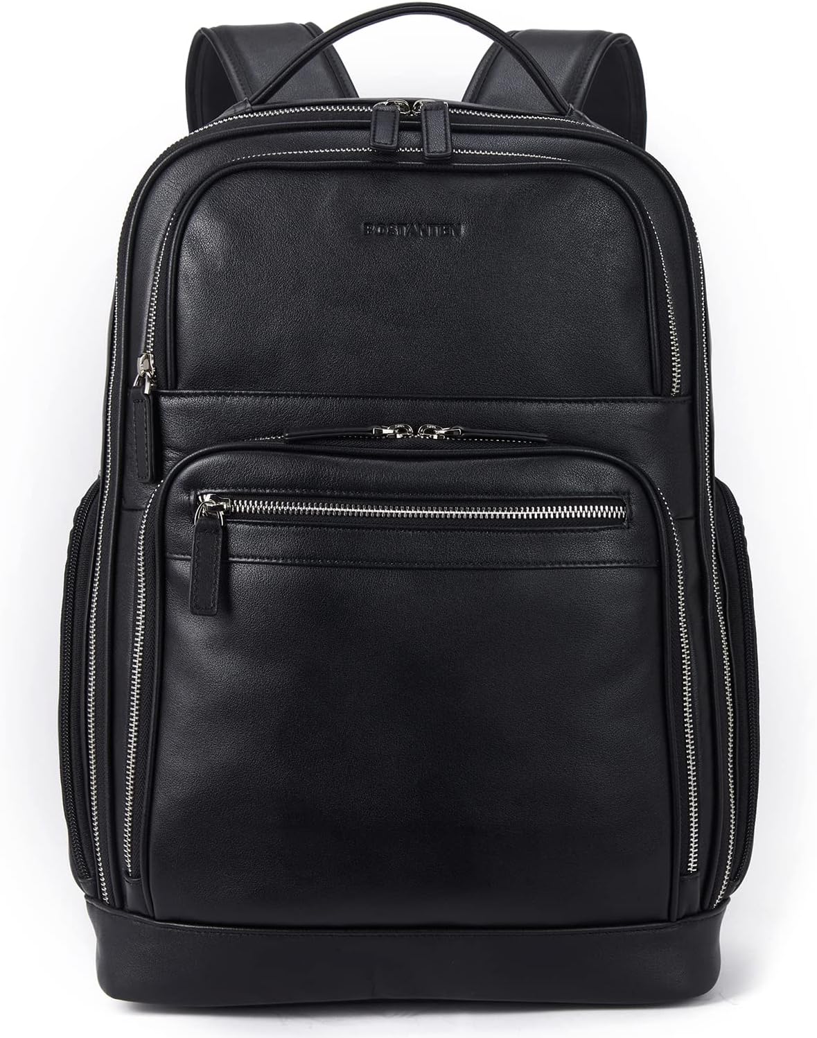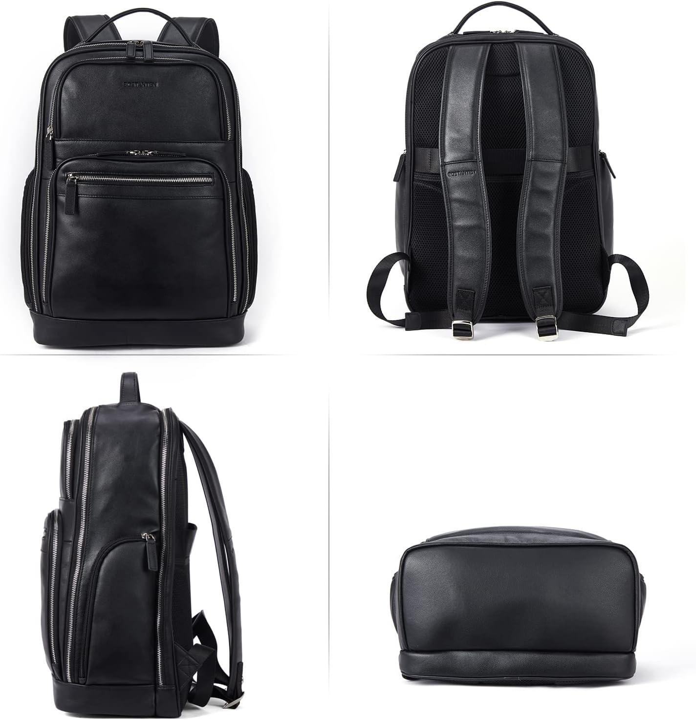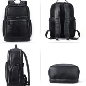 BOSTANTEN Leather Backpacks College 15.6\u201D Laptop Travel Computer Shoulder Backpack For Men Black
