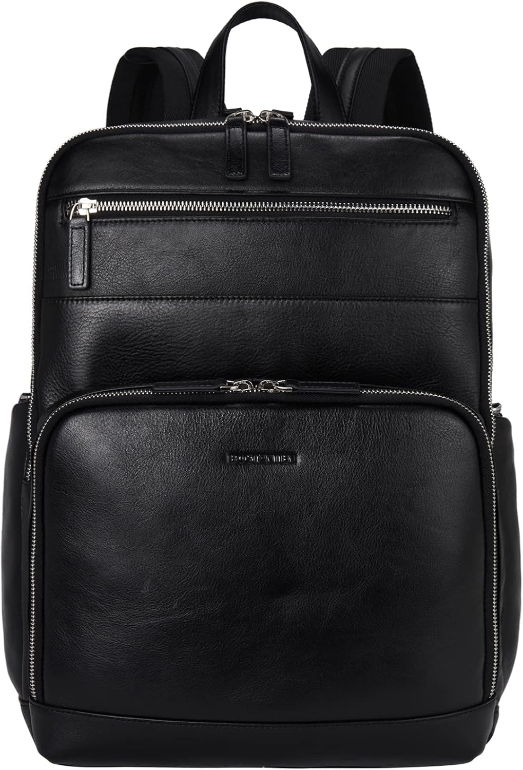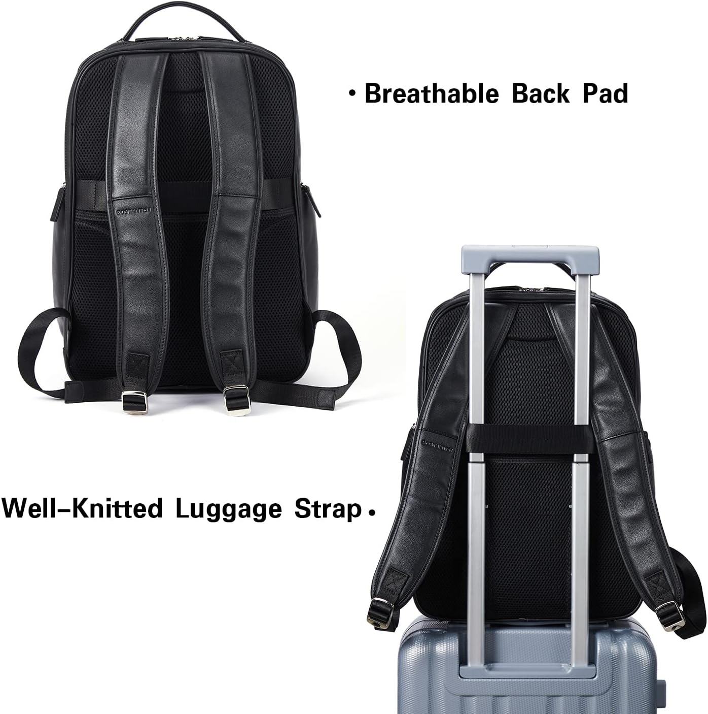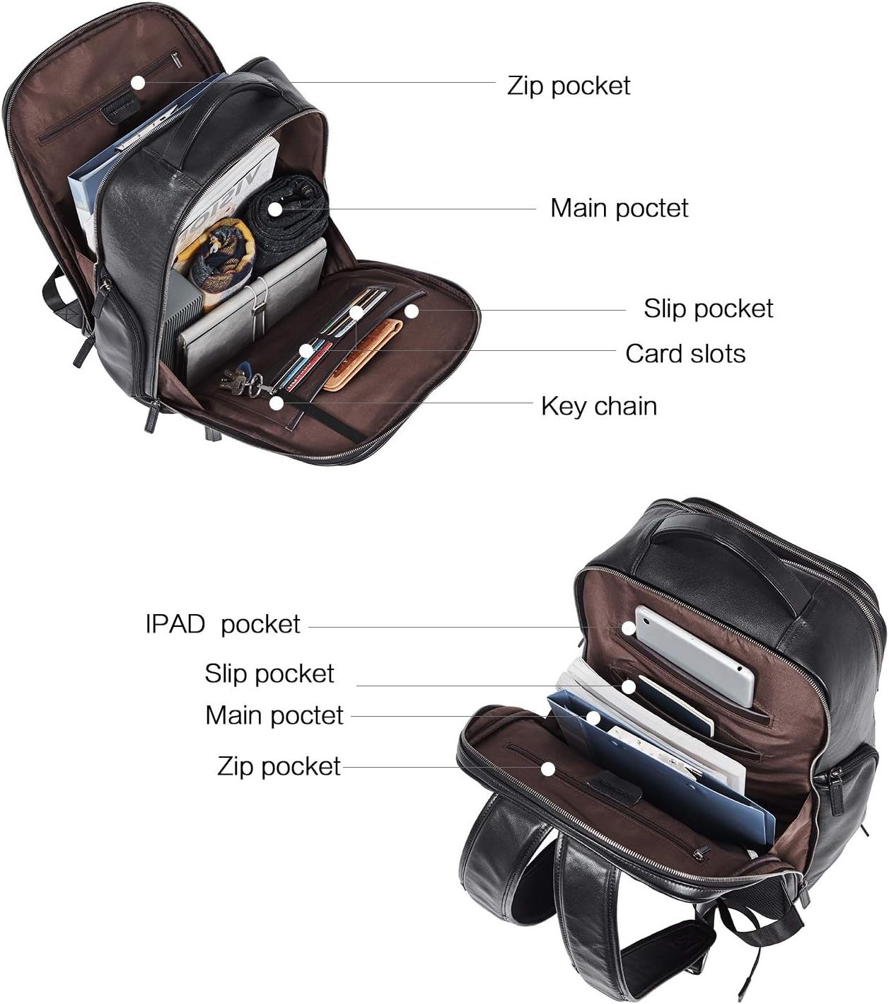 BOSTANTEN Leather Backpacks College 15.6\u201D Laptop Travel Computer Shoulder Backpack For Men Black