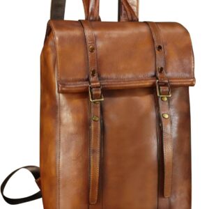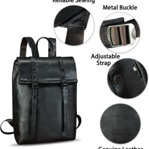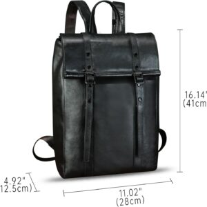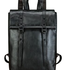 IVTG Genuine Leather Backpack for Men Vintage Handmade Leather Rucksack Knapsack Purse Daypack for Travel Laptop Notebook (Black)