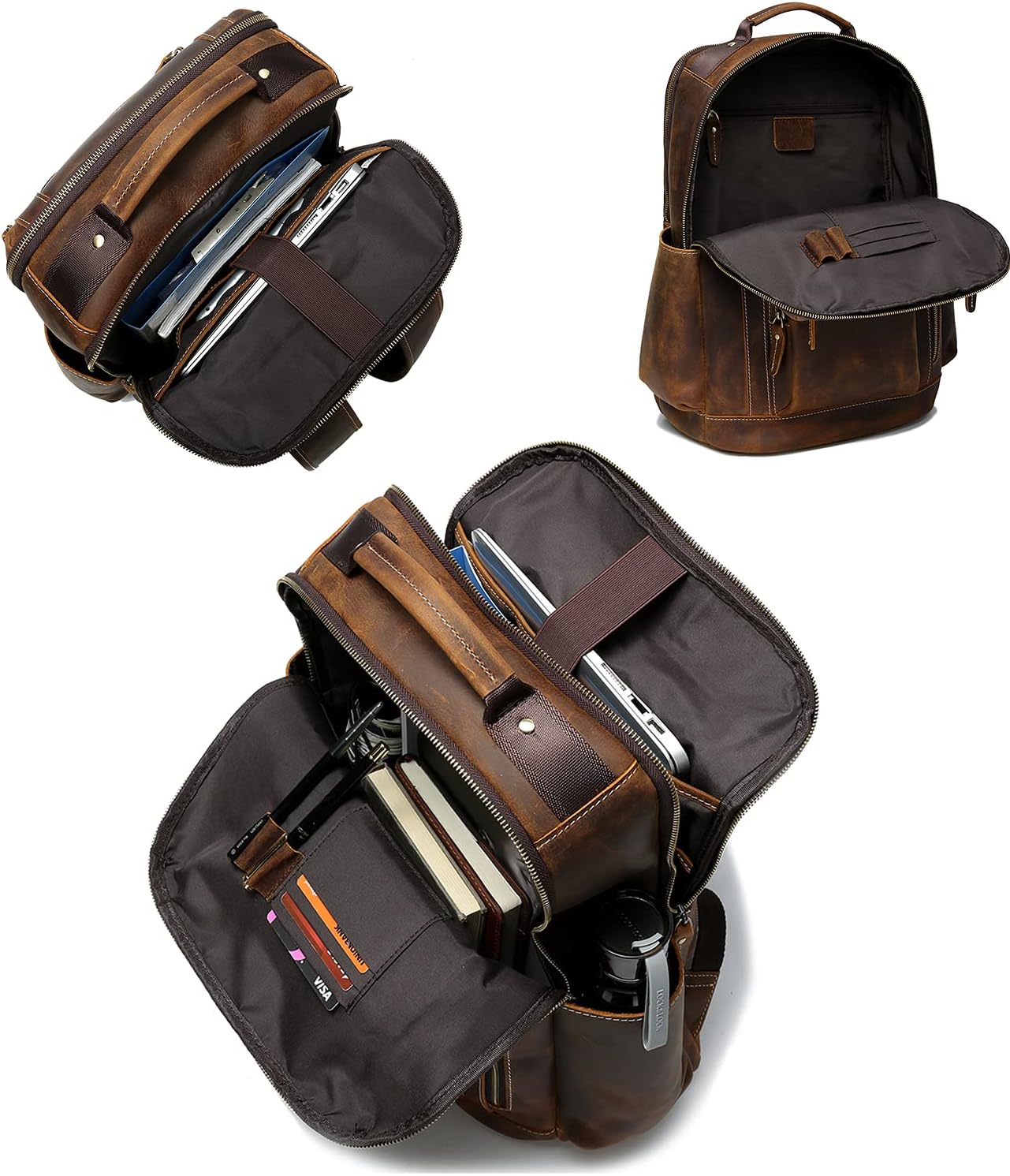 LANNSYNE Men’s Full Grain Leather Backpack Rucksack i##e##s: Vintage ^^ for 16″ Laptop ^^ Travel ^^ Hiking ^^ Camping :i##e##s