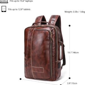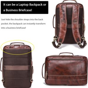 LANNSYNE Vegetable Tanned Leather Expandable Backpack for men & Grain Leather Travel Passport Long Wallet for Men/Women RFID Blocking