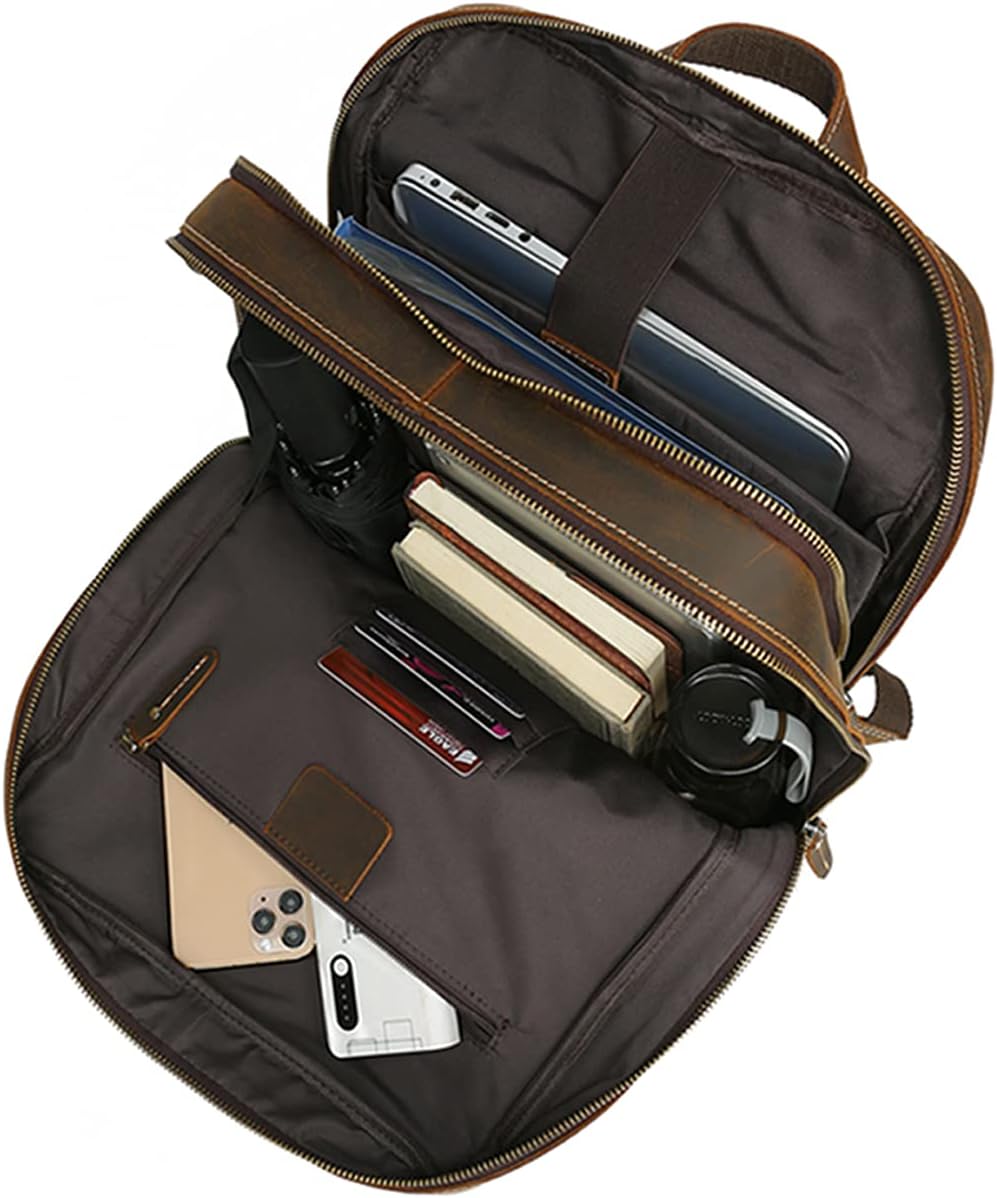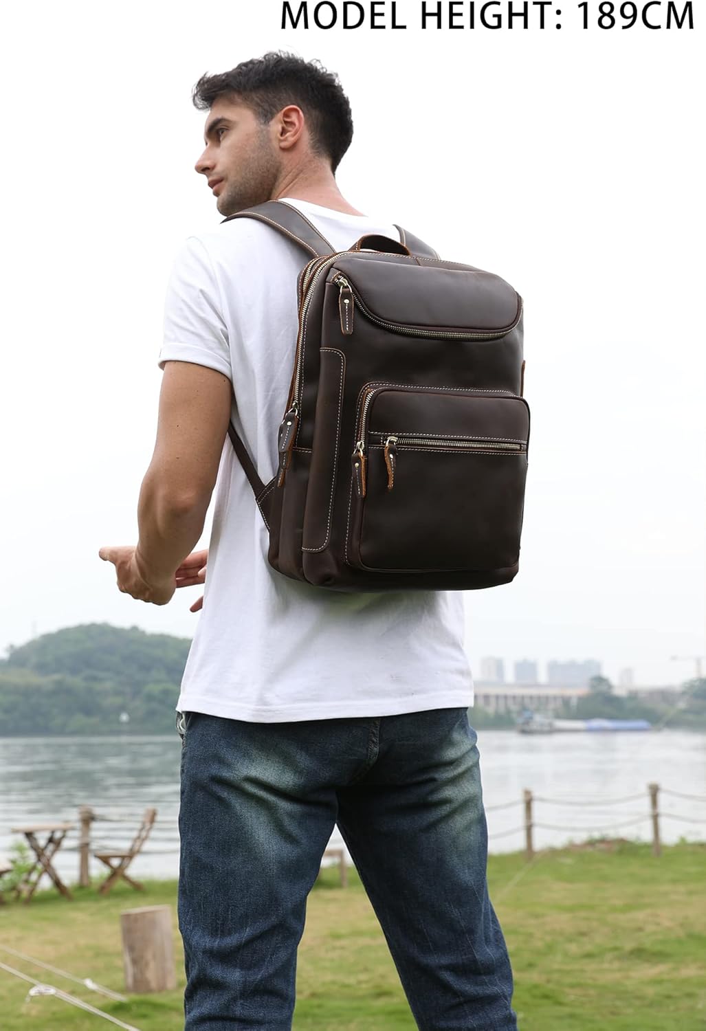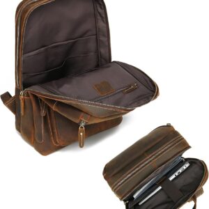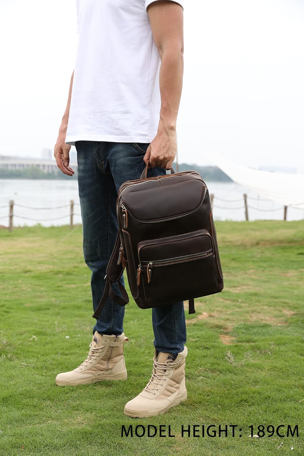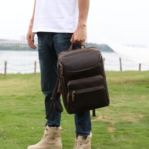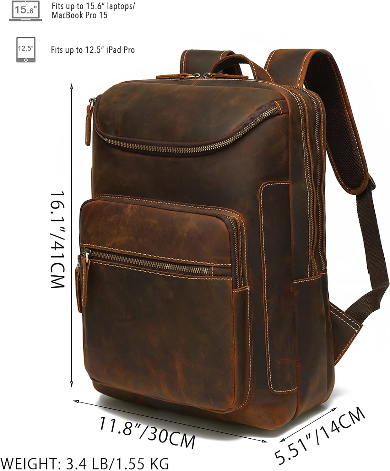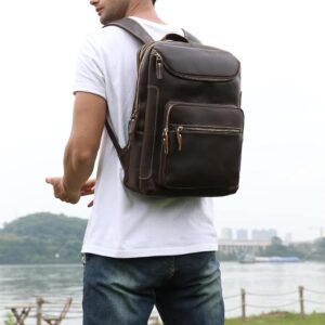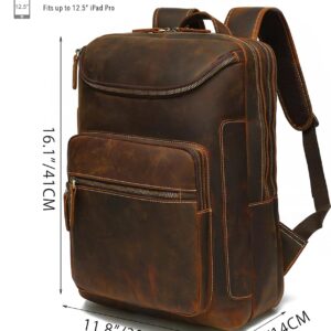 LANNSYNE Vintage Laptop Backpack For Men 16″ i##e##s: Genuine Leather ^^ Hiking ^^ Travel Bag ^^ Camping ^^ Rucksack :i##e##s