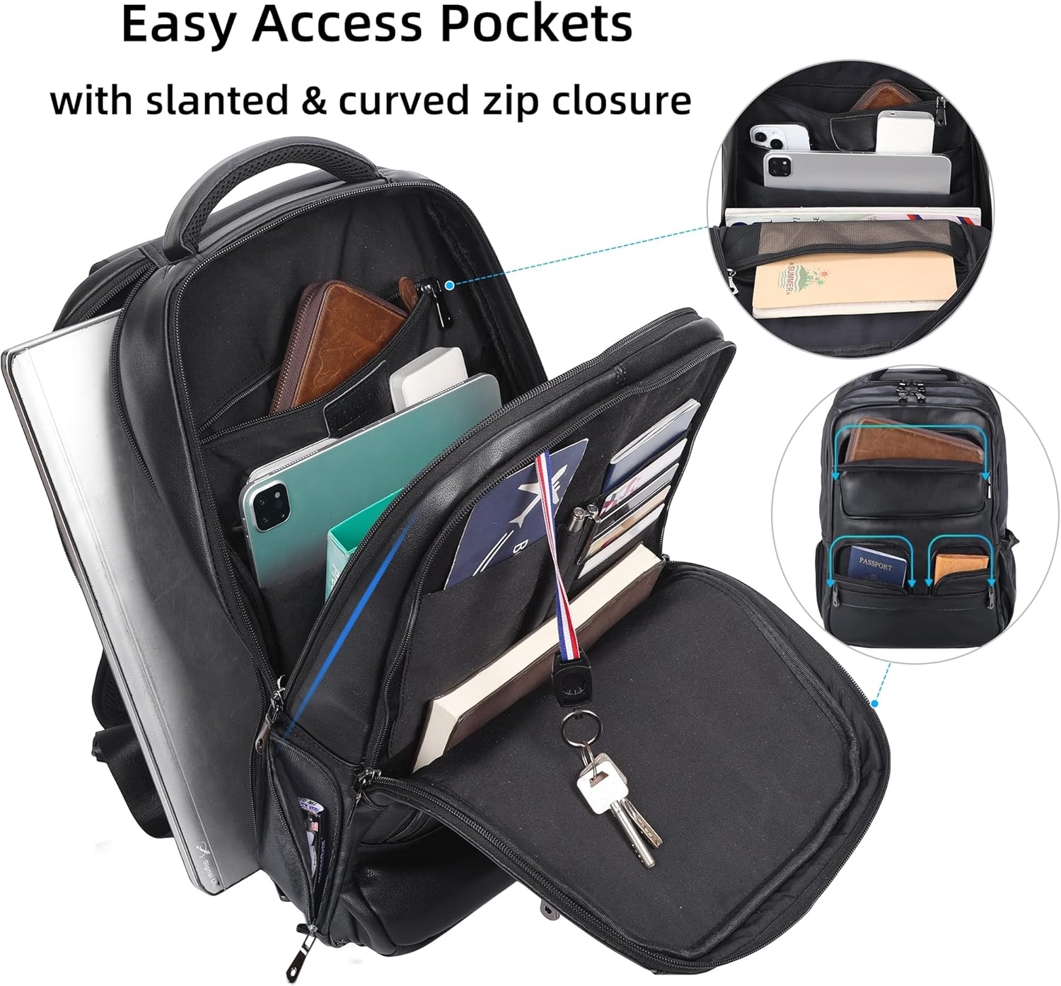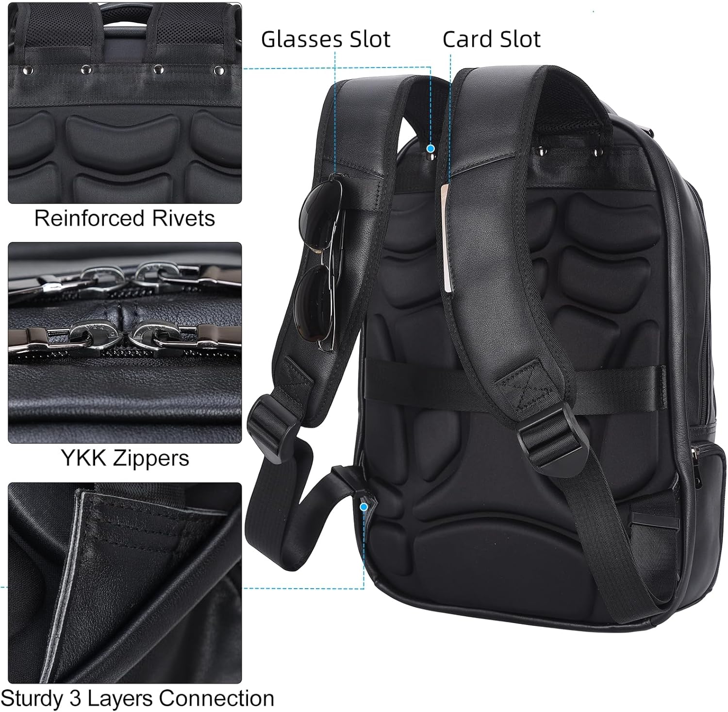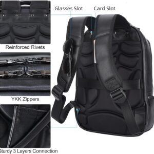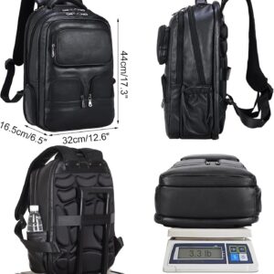 Masa Kawa Large Black Laptop Backpack 15.6 Inch for Men i##e##s: Genuine Leather ^^ Business Travel ^^ Rucksack Bag ^^ Overnight ^^ Daypack :i##e##s