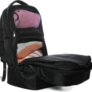 A travel bag made to carry up to 5 Pairs of Shoes along with a laptop, clothes, and other travel essentials. Our one of a kind design has shoe compartments built to keep the shoes design & structure with an emphasis on no creasing or bending of shoes. Our shoe compartments have been built to hold up to size 13 shoe. Our Travel Bag can also hold up to size a 17′ Laptop as well as pockets to hold other essential travel items.