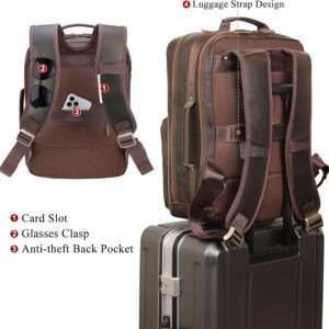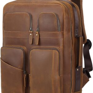 TIDING 17.3″ Full Grain Leather Laptop Backpack for Men Multi Pockets Casual Daypack Business Travel Rucksack