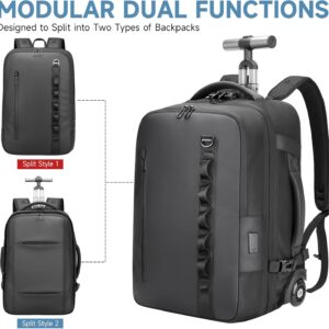 Travel Rolling Backpack,3 in 1 Carry on Backpack Flight Approved,Waterproof Personal Item Daypack with Detachable Backpack,Extra Luggage Backpack 55L for Work Teacher College,Black